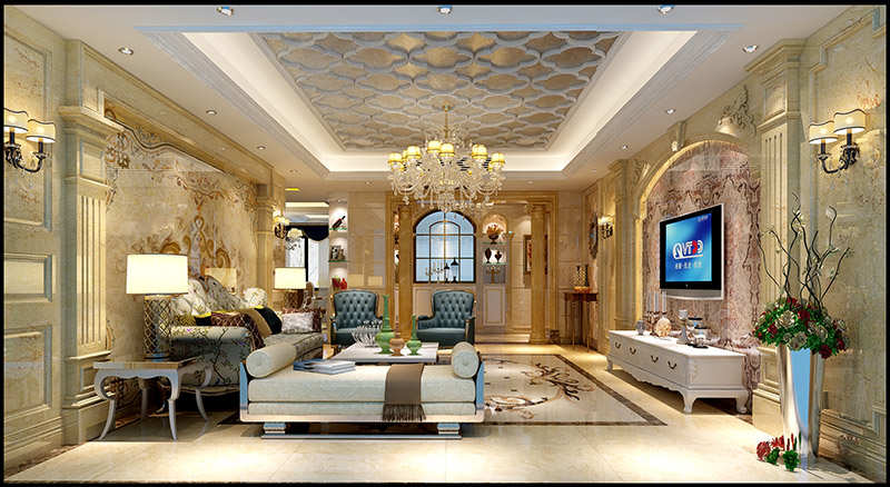 欧式风格室内装修效果图-龙光玖珑湖三居136平米